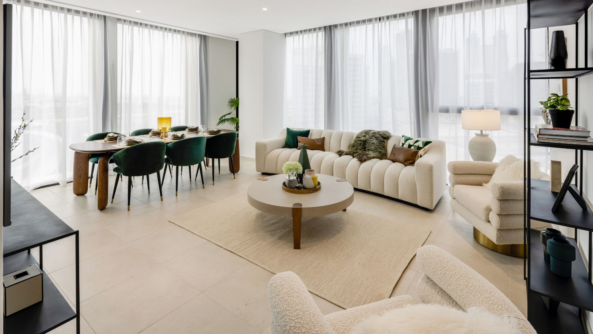 يوفر رزيدنس 110 إطلالات على أفق دبي الرائع ، واسطبلات جودلفين في القوز ، وبرج العرب ، مع زجاج ممتاز للعزل.