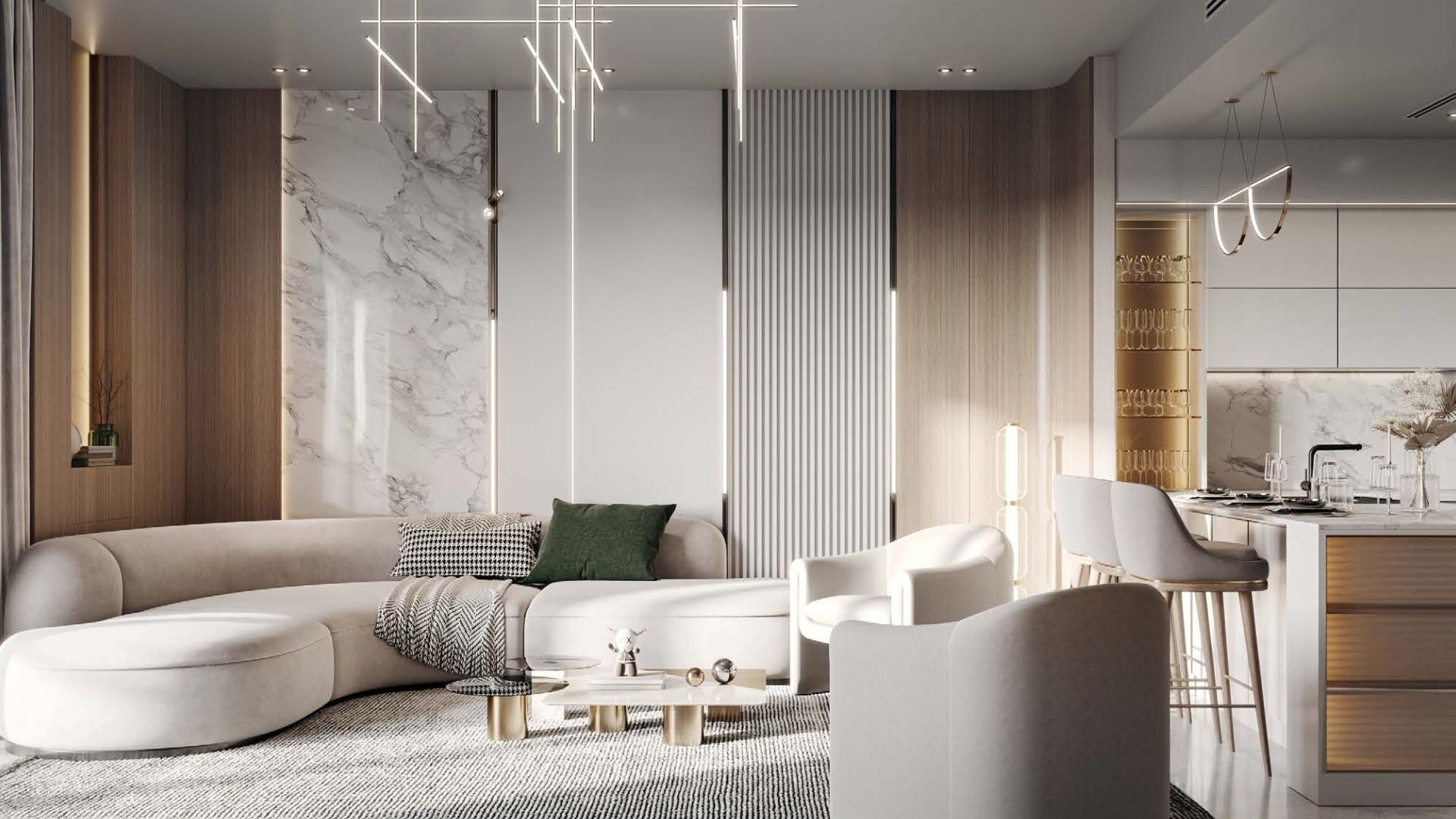ادخل إلى هذه المساكن الفخمة واستمتع بالديكورات الداخلية التي تعيد تعريف الفخامة. تجتمع التشطيبات الممتازة والتركيبات الأنيقة والمواد عالية الجودة معًا لخلق بيئة معيشية متطورة تشع بالحصرية. تُظهر لوحات الألوان المختارة بعناية والتجهيزات الأنيقة والتفاصيل المعقدة التزام شركة بن غاطي العقارية بتقديم أقصى درجات الراحة والجمال الحديث.