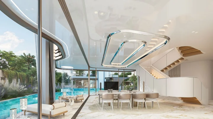 LEOS Royal is a next-generation community built around water, light, and AI-driven design. Featuring sculpted villas and townhouses across two districts, the masterplan blends canals, waterfalls, and climate-responsive architecture to create a calm, modern, and deeply connected living experience.