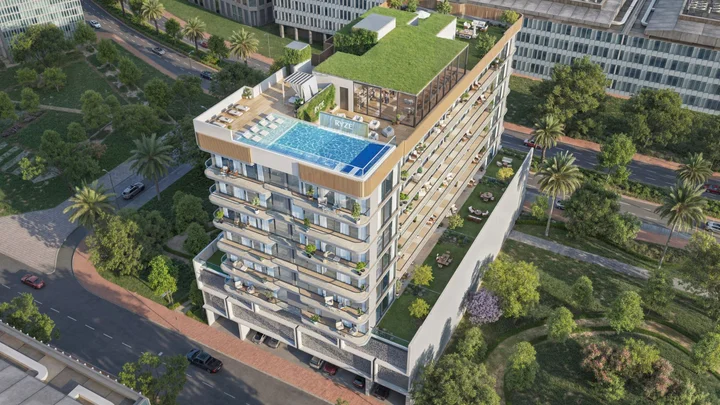 The project offers Studios, 1-Bedroom, and 2-Bedroom apartments in a low-rise structure with lifestyle-focused rooftop amenities.