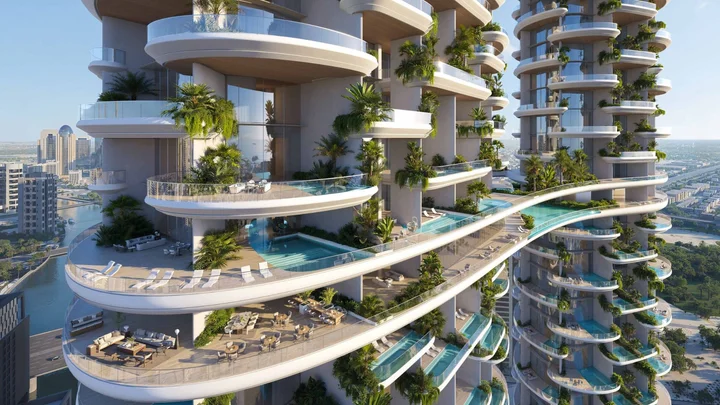 Amali Residences is a bold architectural statement rising along the Dubai Water Canal. The project consists of two sculptural towers, connected by elegant podium levels that blend greenery, leisure, and social spaces. Designed by internationally renowned architects, the towers feature modern glass and steel façades, double-height terraces, and seamless indoor-outdoor living. Every element is carefully planned to maximize views of the canal, city skyline, and open horizons.