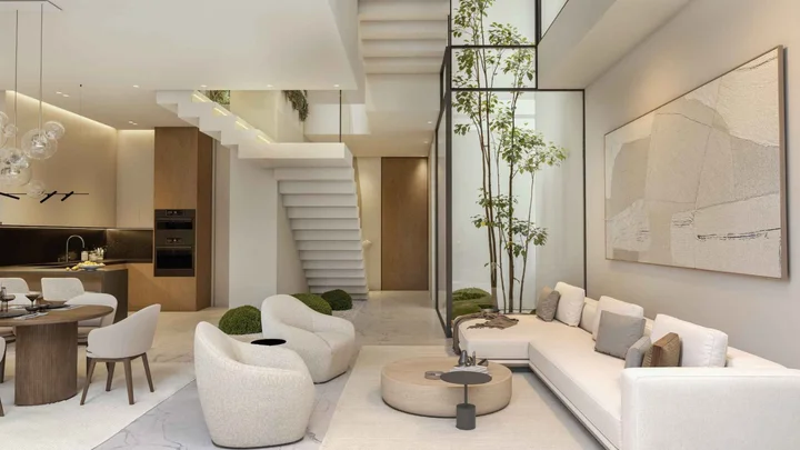 Lunaya offers a collection of 4 and 5-bedroom villas across different layouts including townhouses, maisonettes, duet villas, and standalone homes. Each unit is designed for practical luxury living — open-plan layouts, double-height living areas, and large windows that bring in natural light all day. Interiors are elegant but simple, with high-quality materials like marble flooring, natural stone finishes, and premium European kitchen appliances. Outdoor spaces are just as important, with private gardens, pools, terraces, and in many cases, direct access to the lagoon.