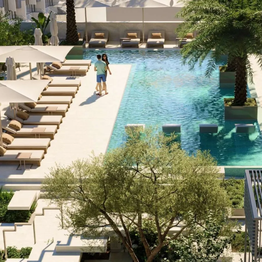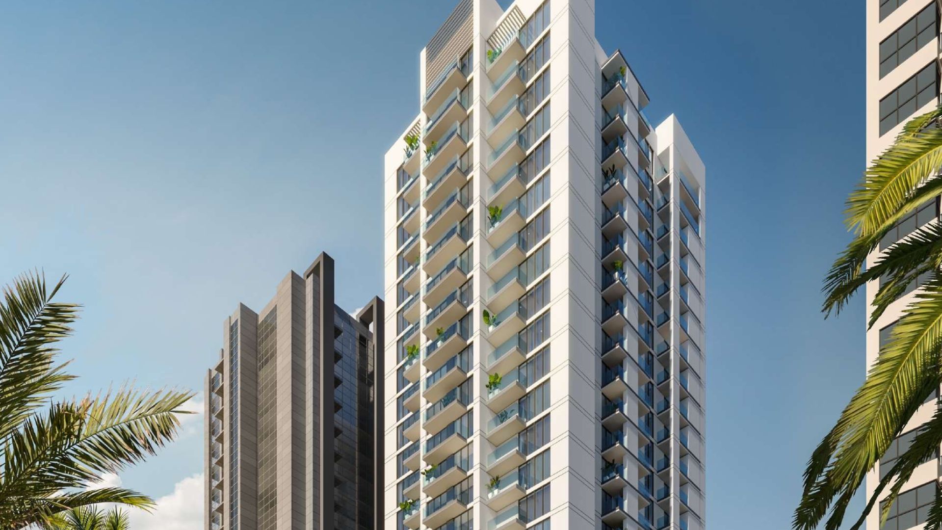 The apartments feature contemporary architectural elements, open-concept layouts, and large windows that offer breathtaking views of the surrounding Jumeirah Village Circle.
