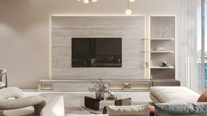 Every home at Divine Al Barari is a peaceful retreat designed to elevate daily life. The interiors feature floor-to-ceiling heat-reduction windows, high ceilings, and recessed lighting that invite natural light and spaciousness. Many apartments come with private balcony pools, marble kitchen islands, and spa-inspired bathrooms finished with rain showers and premium materials. Smart home technology allows residents to personalize comfort with ease.